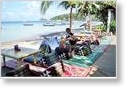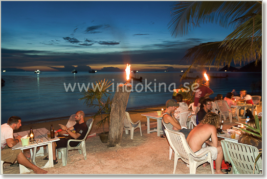 Solnedgång med enkla restauranger och barer på Hat Sai Ri.
