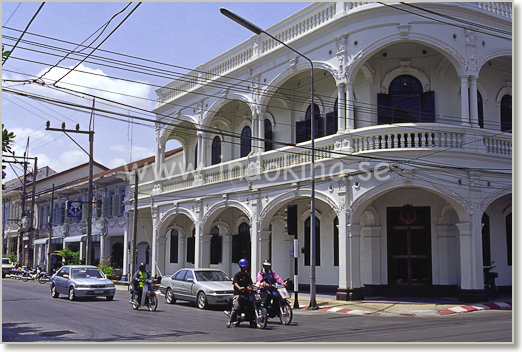 Gamla delen av Phuket Town. Man har börjat ta bort alla fula el- och telefonledningar.