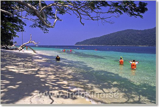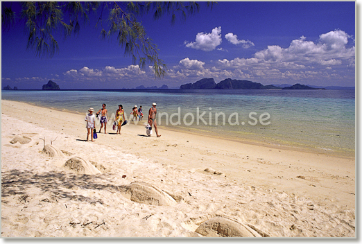 En av stränderna på Ko Kradan. Ko Mook i bakgrunden.