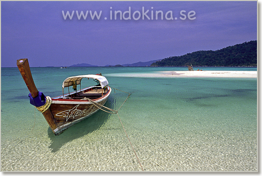 Ko Lipe och Ko Adang i bakgrunden. Info om Long-tail båt.