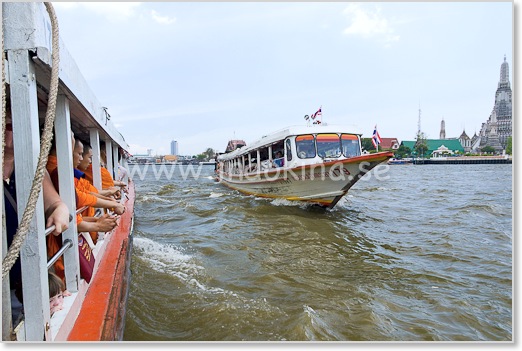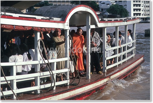 Buddistmunkar som åker med båtarna står alltid upp på höger sida. Lämna plats för dem.