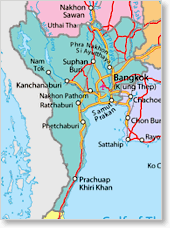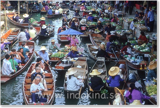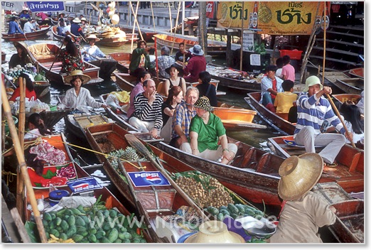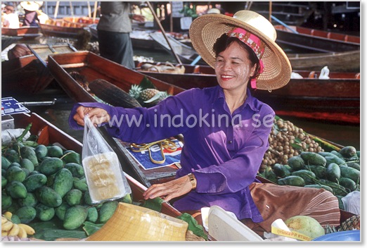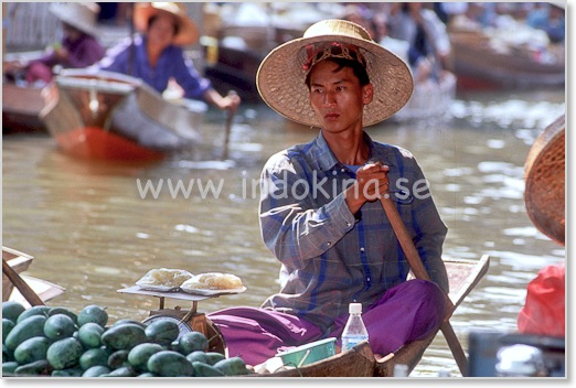Damnoen Saduak ligger ca 60 km sydväst om Bangkok. Räkna med minst 1 timma i restid.