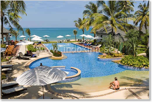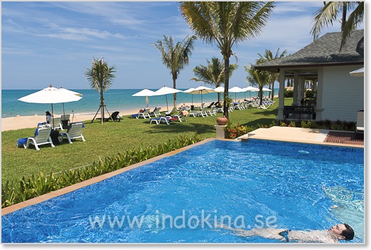 Poolen och lyxbungalows vid La Flora Resort på stranden Bang Niang.