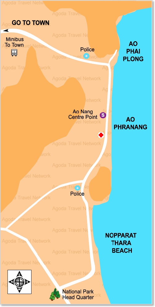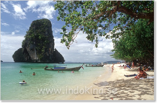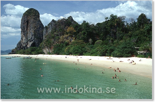 De flesta turister håller till på stränderna Ao Nang och Railay. Se bilder och kartor.