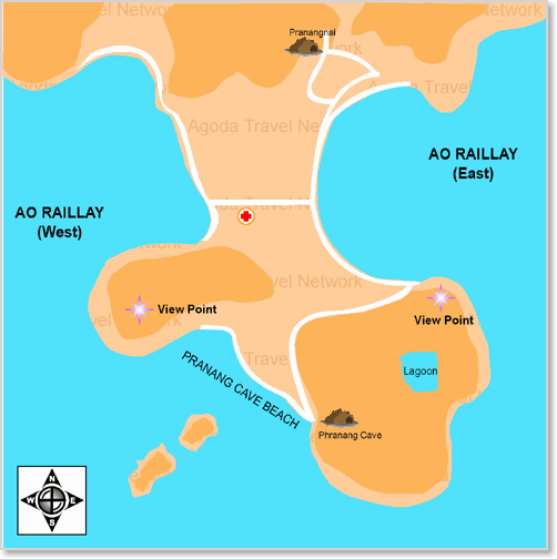 Eller paddla själv från Railay Beach East eller West. Se nedan karta.
