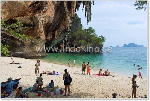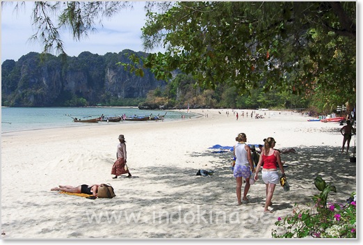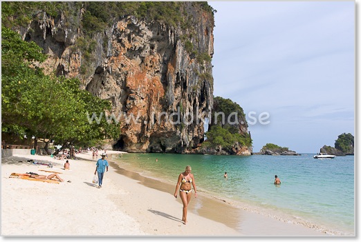 Phra Nang fortsätter i en båge till höger och där är det färre turister.