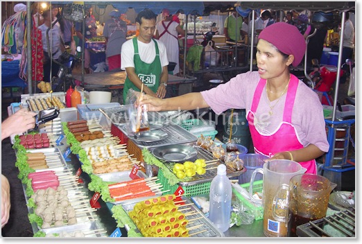 På kvällsmarknaden inne i Krabi stad finns spännande lokal mat till låga priser. Få turister, men gott om thailändare. Tag buss eller taxi från Ao Nang. Night Markets - karta.