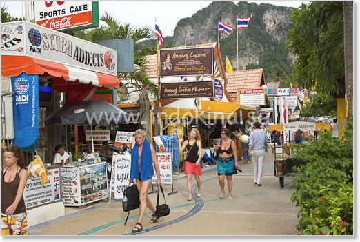 Strandpromenaden vid Ao Nang. Här finns det mesta som turister behöver . . .