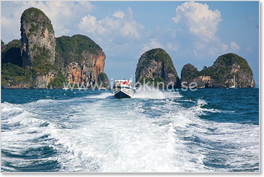 Stränderna Railay och Phra Nang finns till vänster om bilden (10-15 minuters båttur).