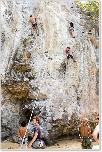 Bergsklättring för nybörjare vid Railay East. Guide och utrustning finns att hyra.