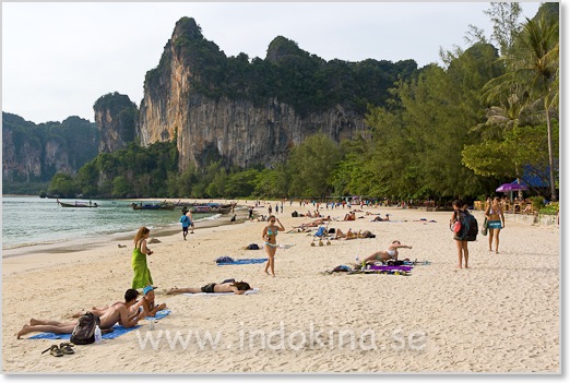Railay en sen eftermiddag. Folk väntar på solnedgången.