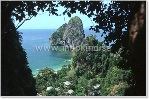 Utsikten från toppen av berget vid Railay Beach East är mycket vacker. Man går upp från gångstigen intill hotellet Rayavadee.
