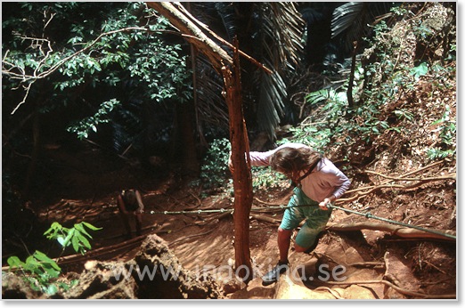 Halt och smutsigt när det har regnat - annars ganska lätt klättring med rep att hålla sig i.