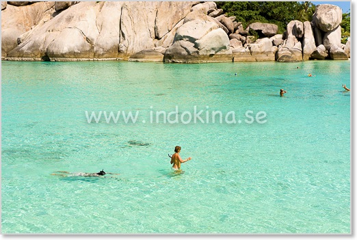 Mask och snorkel finns att hyra eller köpa intill restaurangen. Tag på dig en T-shirt när du snorklar - annars blir ryggen snabbt solbränd.