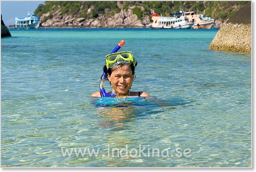 Ko Nangyuan har utmärkta att dyk- och snorkelvatten. Man behöver inte simma långt för att se fiskar i regnbågens alla färger.