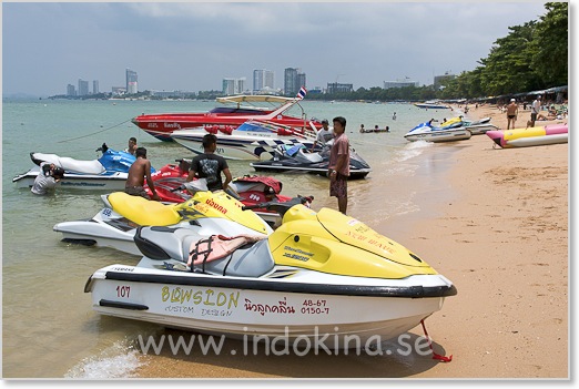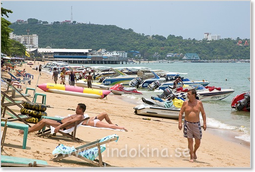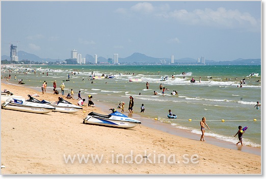 Stranden Pattaya Beach är ganska stökig med vattenskotrar och racerbåtar.