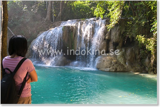 Erawan ligger ca 65 km nordväst om staden Kanchanaburi. Boka en tur eller hyr en pickup-taxi med chaufför. Kan kombineras med Tigertemplet.