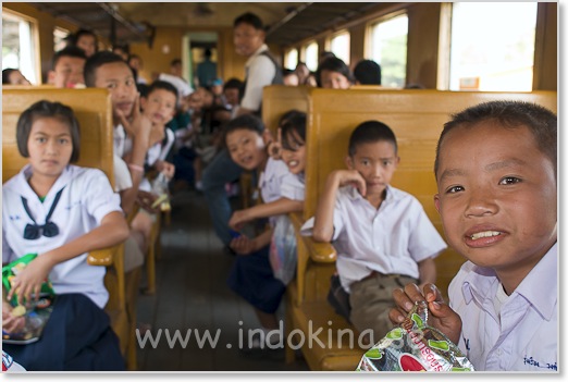 De flesta turister åker buss från Bangkok till Kanchanaburi, men man kan ta tåget hela sträckan. Fast det tar lång tid - se nedan tidtabell.