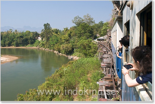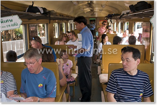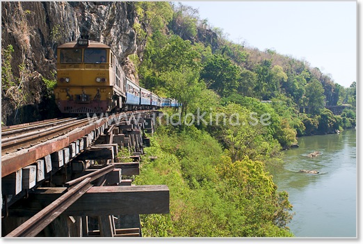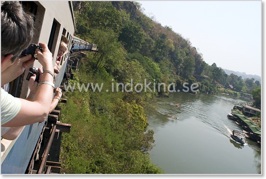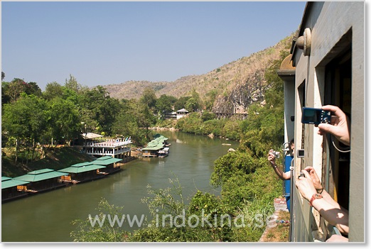 Kliv helst på tåget inne i Kanchanaburi stad i stället för vid själva bron. Då hinner man ta en bra plats innan turistgrupperna kommer ombord.