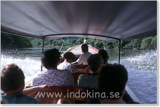 Båttur på Kwai Noi. Landskapet mot Burma är bergigt med djungel, vattenfall och grottor.