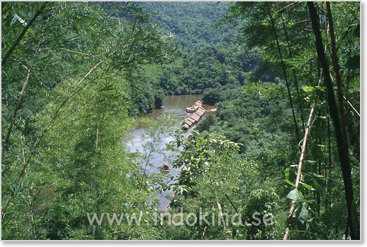 Det vackraste sträckan går här längs floden Kwai Noi. Husen är flytande hotell.