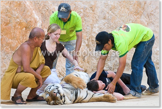 Stora kattdjur blir aldrig tama. Var på din vakt - går en tiger till attack är det nog kört.