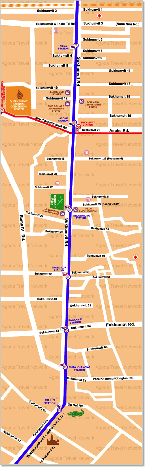 Sky tåg och gatan Thanon Sukhumvit.