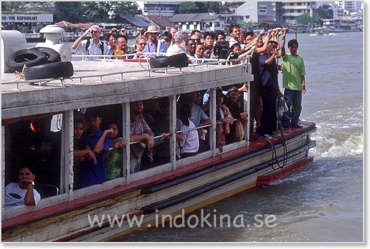 Buddistmunkar som åker med båtarna står alltid upp på höger sida. Lämna plats för dem.