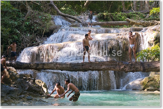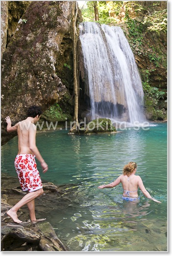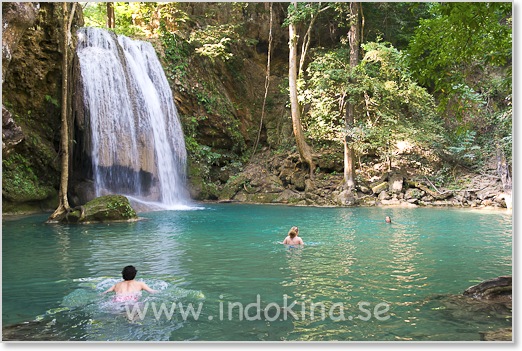 Erawan ligger ca 65 km nordväst om staden Kanchanaburi. Boka en tur eller hyr en pickup-taxi med chaufför. Kan kombineras med Tigertemplet.